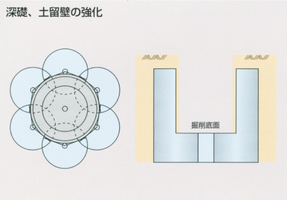 必要な改良範囲に、最適な改良径と改良角度の改良体を